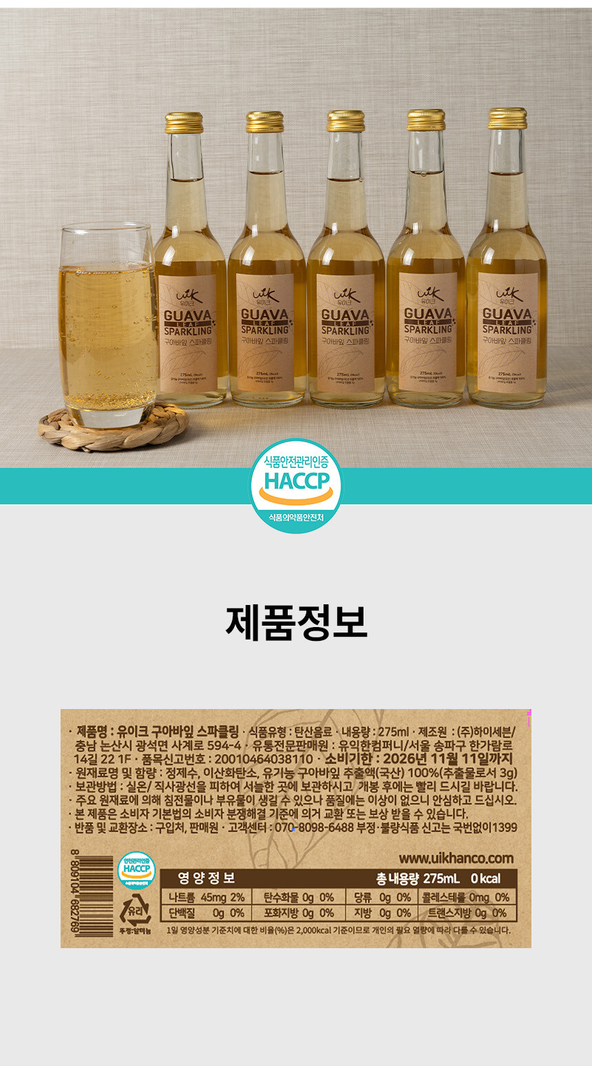 카페인ZERO! 칼로리0% 제주 유기농 유이크 구아바잎 스파클링 275ml 12ea / 12시까지 당일 배송 출발